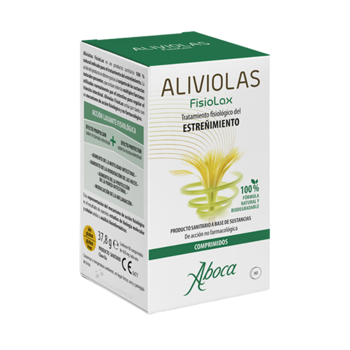 Aliviolas FisioLax es un producto indicado para el tratamiento del estreñimiento. La acción del producto se obtiene gracias al conjunto de las sustancias presentes, que actúan sobre las múltiples funciones utilizadas normalmente por el intestino para regular el tránsito intestinal. Aliviolas FisioLax actúa, por tanto, con un mecanismo de acción fisiológico no farmacológico.