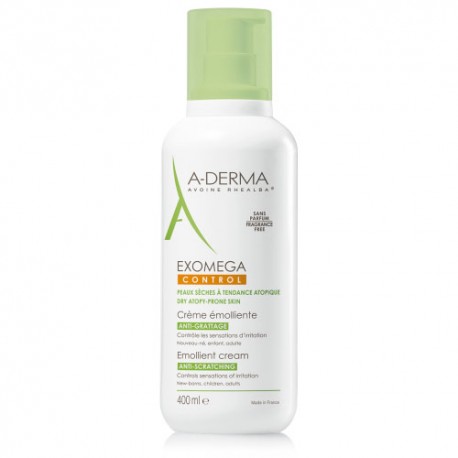 Exomega Control Crema de A-Derma calma, hidrata y refuerza la barrera cutánea de las pieles secas con tendencia atópica. Su fórmula con extracto de plántulas de Avena Rhealba®, Filaxerine® y vitamina B3 alivia el picor y reduce la sequedad desde la primera aplicación. Textura rica y no pegajosa, ideal para toda la familia.