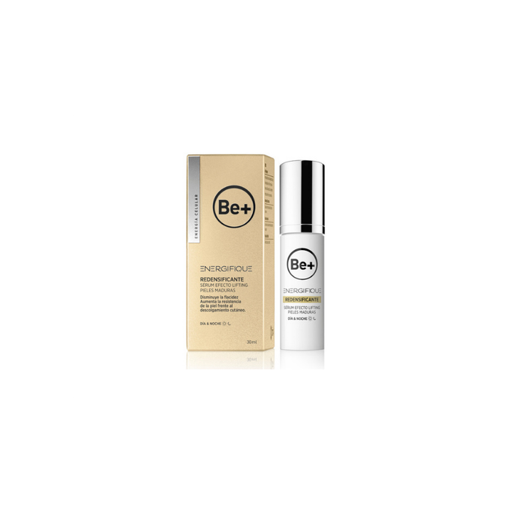 Sérum Redensificante Be+ con efecto lifting para piel madura. Disminuye la flacidez y aumenta la resistencia de la piel frente al descolgamiento cutáneo.