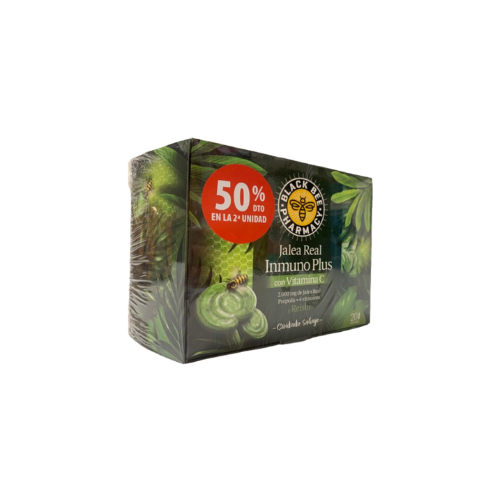 Las ampollas Jalea Real Black Bee Inmuno están diseñadas para reforzar las defensas del organismo y mantener un sistema inmunitario fuerte de manera natural. Su fórmula contiene jalea real pura, miel, propóleo, extracto de guaraná, vitamina C, zinc, selenio y vitaminas del grupo B (B1, B2, B6, B12), niacina y ácido pantoténico, ingredientes que actúan en sinergia para proteger al organismo frente al estrés y factores externos, mejorar la energía y contribuir al bienestar general. Ideales durante cambios de estación, épocas de mayor exposición a virus o situaciones de fatiga, las ampollas Black Bee Inmuno son el complemento perfecto para mantener tu cuerpo fuerte, activo y equilibrado cada día. Cuida tus defensas de forma natural con Black Bee Inmuno.
