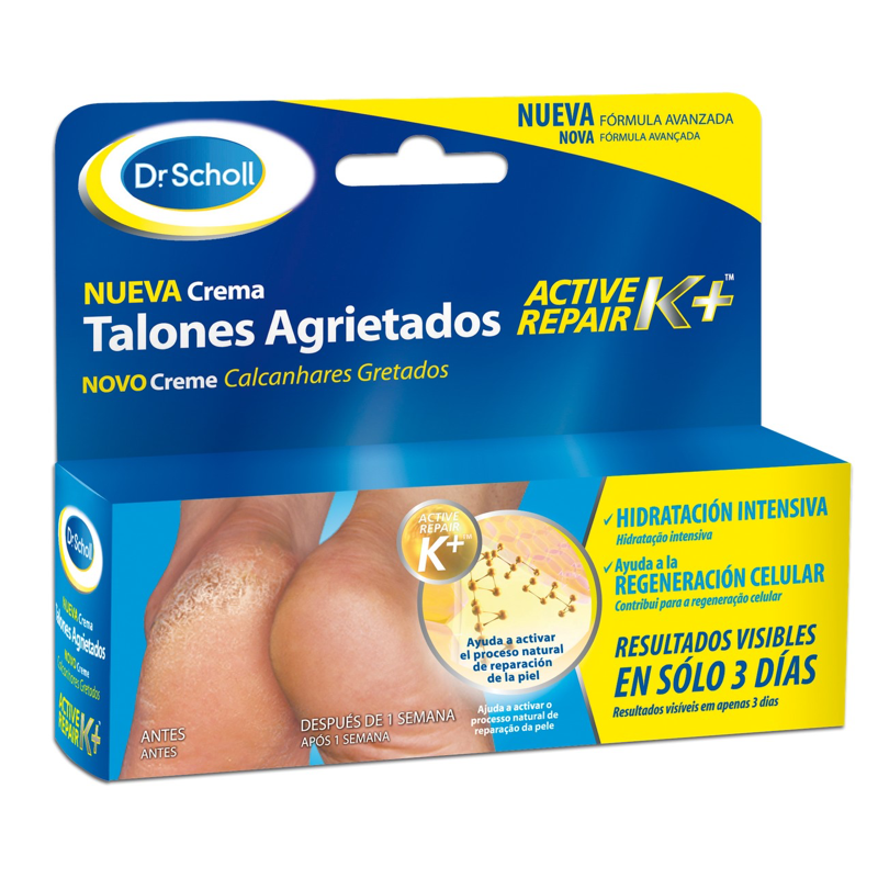 La crema para talones agrietados de Dr. Scholl activa la regeneración celular, gracias a su formulación mejorada con Active Repair K+™ y Queratina Funcional. Los resultados son visibles en tan solo 3 días.