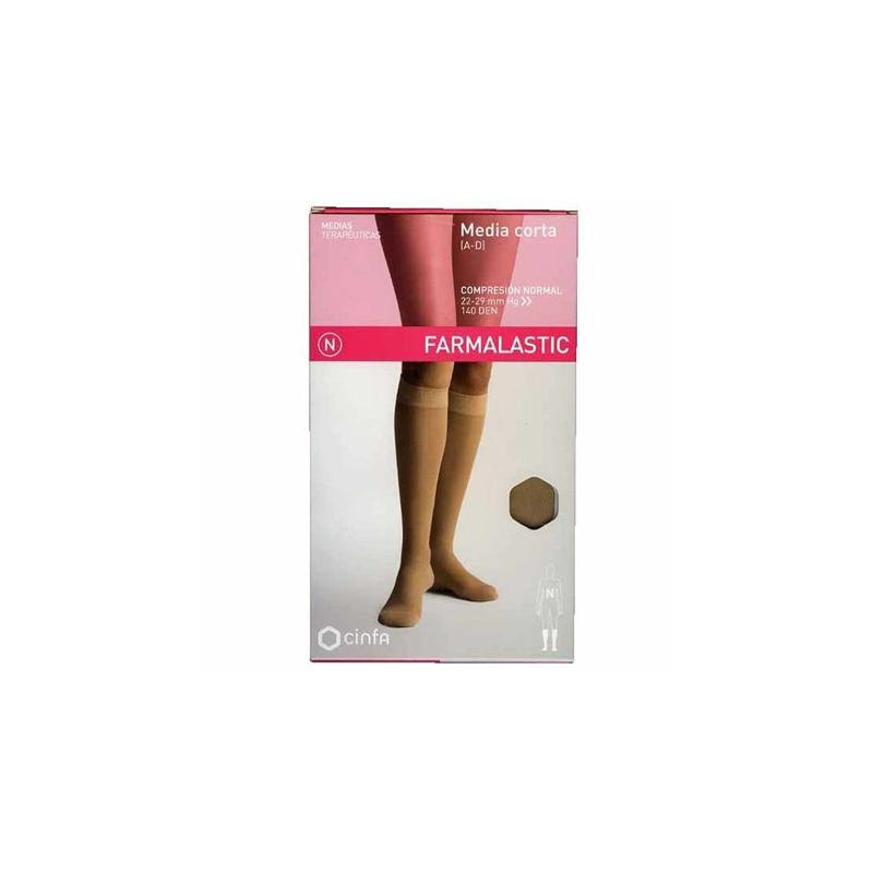 MEDIA CORTA (A-D) COMPRESIÓN NORMAL FARMALASTIC BEIGE. T. MEDIANA Está compuesta por hilo de 140 deniers. La media corta (A-D) tiene un puño anti-press que mantiene la prenda en su sitio sin que se caiga, y no comprime. Su puntera tampoco comprime los dedos.