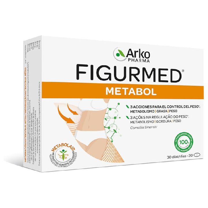 Arkopharma Figurmed Metabol 30 cápsulas es un complemento alimenticio a base de extractos de plantas favoreciente en el control de peso, específicamente en la reducción de la grasa abdominal y del contorno de brazos. Contiene Metabolaid, un complejo innovador de extracto de verbena y flor de hibisco, asociado al té verde. Incluye gratis el exclusivo servicio online: Arkopharma Contigo. Durante 30/60 días, un experto en nutrición te acompañará para lograr tus objetivos. Está indicado para adultos que busquen un control de su peso corporal.