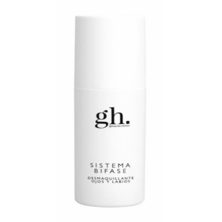 Gema Herrerías Sistema Bifase Desmaquillante Ojos y Labios 150 ml: desmaquillante bifásico eficaz para eliminar maquillaje resistente e incluso waterproof sin frotar. Fase oleosa con dodecane y triglicéridos cáprico-caprílico que disuelven grasa y maquillaje; fase acuosa con maltooligosyl glucoside e hydrogenated starch hydrolysate, oligosacáridos derivados del almidón que arrastran suavemente y protegen la piel, además de glicerina que humecta y mejora el deslizamiento. Formulado a pH neutro 6.5‑7, testado oftalmológica y dermatológicamente, apto incluso para piel sensible y zona de ojos y labios. Usar solo por la noche: agitar antes de aplicar sobre disco y deslizar, sin aclarado.