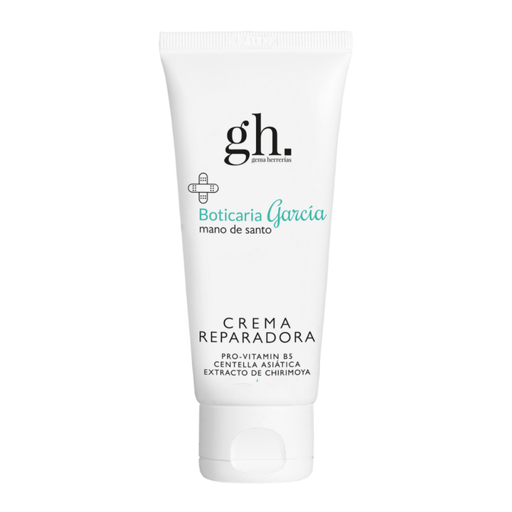 La Crema Reparadora Mano de Santo 100 mL, fruto de la colaboración entre Gema Herrerías y Boticaria García, es un tratamiento intensivo en textura cremigel fluida pensado para aliviar y reparar las pieles agredidas o irritadas. Esta fórmula multiusos combina ingredientes de alto rendimiento como pro‑Vitamina B5 (pantenol), que calma el picor, repara la función barrera y atenúa rojeces, junto con extracto de chirimoya, que reduce la sensibilidad y la inflamación. Además, la acción reestructurante de la centella asiática mejora la hidratación y suavidad, mientras que el aceite de adansonia (del árbol de la vida) aporta hidratación intensa, efecto emoliente y protección antioxidante. También incluye extracto de regaliz, con cualidades purificantes, antioxidantes y suavizantes, además del distintivo extracto de alkanna, derivado de procesos de economía circular, que aporta un delicado tono rosado a la crema. Con un pH aproximado de 5,5, esta crema calmante, hidratante, antirrojeces y reparadora está dermatológica y clínicamente probada y es apta para toda la familia (excepto menores de 3 años), incluso durante embarazo o lactancia. Es ideal para tener siempre a mano en el botiquín: alivia picor, rojeces o irritaciones causadas por frío, sol, sequedad, picaduras o uso de activos potentes como retinoides. Su textura ligera y de rápida absorción la hace especialmente agradable y práctica para rostro, cuerpo y manos. Se recomienda aplicar una capa generosa sobre la piel limpia y seca de dos a tres veces al día, evitando el contorno de ojos.