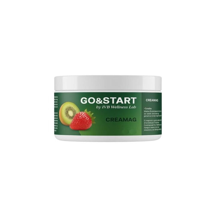 Go&Start Creamag sabor fresa‑kiwi ofrece una fórmula avanzada que combina creatina monohidrato Creavitalis® (alta pureza, ultrafiltrada) con malato de magnesio y bisglicinato de magnesio de calidad Albion®, para apoyar el rendimiento físico, la recuperación muscular, la salud ósea y el funcionamiento óptimo del sistema nervioso. Cada dosis de 5 g contiene aproximadamente 3000 mg de creatina y ≈ 200 mg de magnesio proveniente de sus dos formas queladas, asegurando eficacia y tolerancia digestiva. Con aroma natural de fresa‑kiwi, sin azúcar añadido, apto para veganos, sin gluten y sin lactosa, este complemento es ideal para deportistas o personas activas que buscan optimizar energía, reducir fatiga y mejorar su bienestar general.