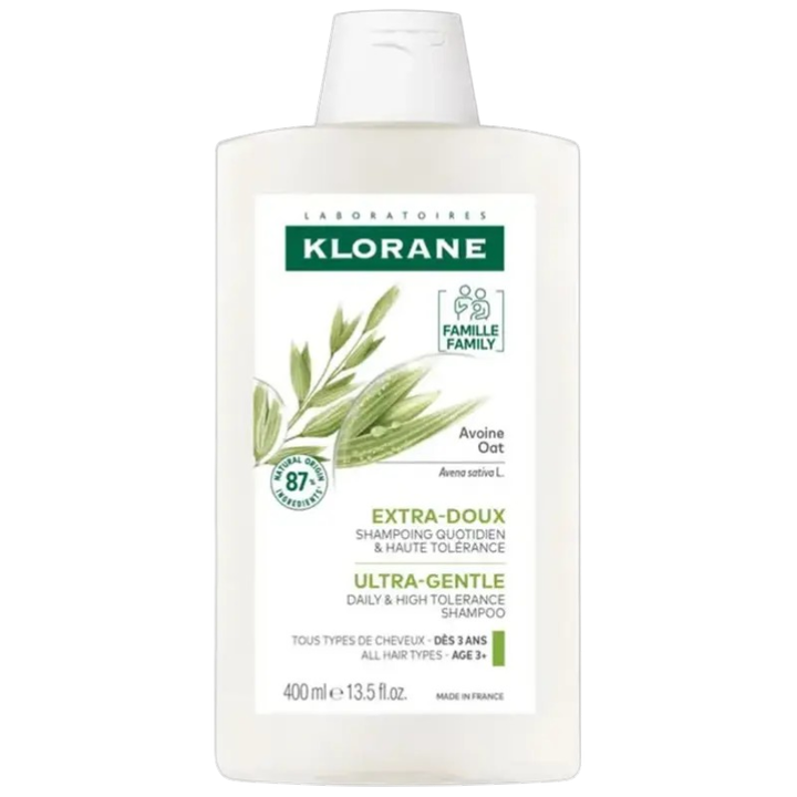 El Champú Extra Suave a la Avena de Klorane 400 ml es un champú de uso frecuente formulado para limpiar con delicadeza y proteger el cabello y el cuero cabelludo de toda la familia, incluso los más sensibles. Su fórmula contiene extracto de avena BIO, una planta conocida por sus propiedades suavizantes y protectoras, que ayuda a hidratar, aportar flexibilidad y mantener el equilibrio natural del cuero cabelludo, dejando el cabello limpio, ligero y sedoso tras cada lavado.