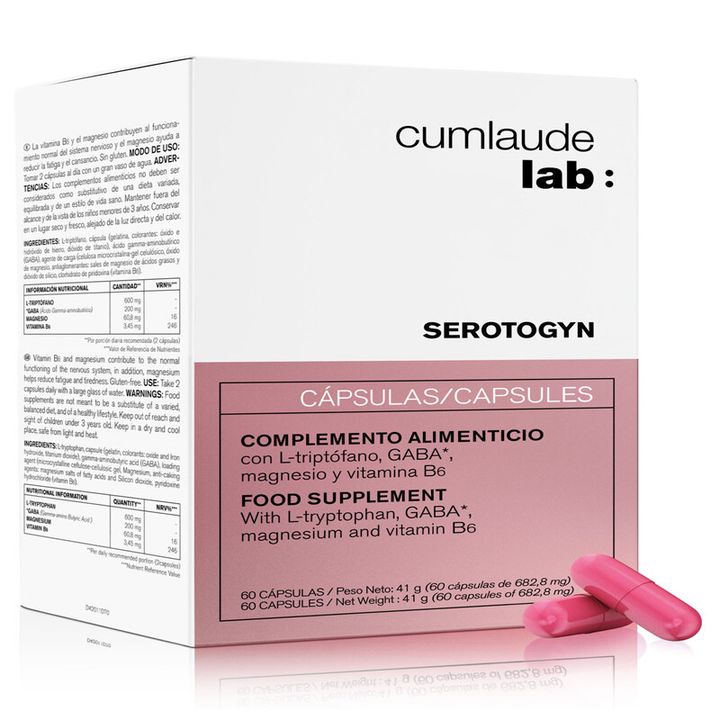 Complemento alimenticio para mujeres con menopausia indicado para evitar los sofocos y otros trastornos asociados. Cumlaude Serotogyn 60 cápsulas ayuda contra la menopausia. La llegada de la menopausia es un momento que aterra a la mayoría de las mujeres por el cambio drástico que supone. Con ella suelen llegar los sofocos, la irritabilidad, el cansancio y el desgaste de los huesos. Para esto, Rilastil ha creado estas cápsulas. Este producto evita el desgaste debido a la actividad física, el trabajo o incluso la vida social, al mismo tiempo que ayuda a que las defensas del organismo no bajen y combate sofocos, trastornos de sueño o sudoraciones. Características: Indicado para mujeres con la menopausia. Apto para intolerantes al gluten. Apto para intolerantes a la lactosa. Modo de empleo: Tomar dos cápsulas al día por la mañana acompañadas de un vaso de agua. Si tienes dificultad para conciliar el sueño o sofocos, puedes tomar una cápsula por la mañana con un vaso de agua y otra por la noche, también acompañada de un vaso de agua. Recomendaciones: Los complementos alimenticios no son sustitutivos de una dieta equilibrada y un modo de vida saludable. Mantener en un lugar fresco y seco. Mantener lejos del alcance y la vista de los niños.
