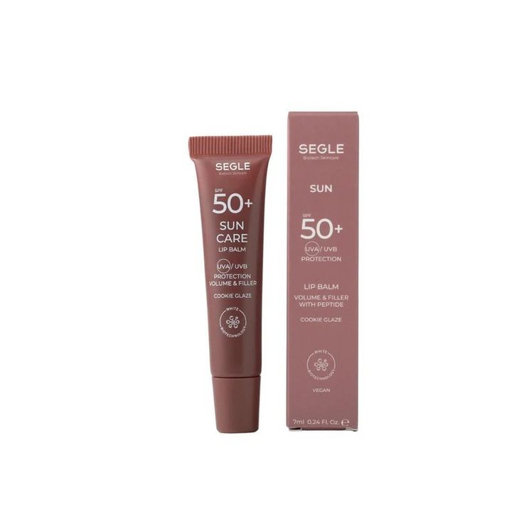 Bálsamo labial multifuncional: combina protección solar alta (SPF50+), efecto volumen y peptidoterapia antiarrugas, con un delicado brillo y sabor a galleta de chocolate.