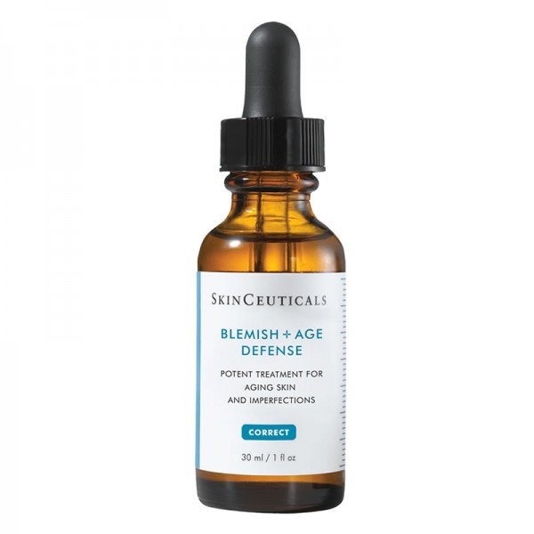 Skinceuticals Blemish + Age Defense es un tratamiento específico oil-free para tratar las imperfecciones y los signos de la edad de la piel madura. Esta pionera combinación de ácidos contiene un 2 % de ácido dioico y una formulación óptima de alfa y betahidroxiácidos para reducir las imperfecciones y los poros obstruidos, al tiempo que mejora la apariencia de líneas de expresión, arrugas y unifica el tono de la piel. Reduce el exceso de sebo. Mejora la aparición de las manchas e imperfecciones y unifica el tono de la piel. Descongestiona los poros obstruidos. Disminuye los signos visibles del envejecimiento. Ideal para pieles propensas a las imperfecciones, grasas, mixtas y maduras.