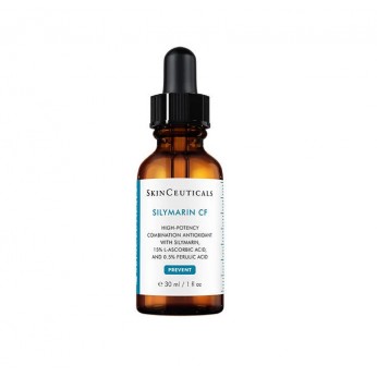 Silymarin CF es un potente sérum antioxidante con vitamina C cuya combinación de 0,5% silimarina, 15% ácido L-ascórbico y 0,5% ácido ferúlico ha demostrado clínicamente proporcionar una protección ambiental avanzada frente al daño causado por los radicales libres que provocan la oxidación de la grasa de la piel, favoreciendo la aparición de imperfecciones y de signos visibles de la edad. Este sérum con vitamina C contiene, además, 0,5% ácido salicílico para reducir las imperfecciones y ayudar a prevenir la aparición de nuevas imperfecciones. Proporciona una protección ambiental avanzada neutralizando el daño causado por los radicales libres. Previene la oxidación de la grasa de la piel que contribuye a la formación de las imperfecciones. Minimiza los poros y reduce el exceso de grasa. Mejora la apariencia de las arrugas y los signos de la edad. Alisa la textura de la piel. RESULTADOS VISIBLES, En un estudio clínico de 8 semanas, Silymarin CF demostró mejorar visiblemente los signos de la edad: 24% media de mejora de las líneas de expresión y arrugas.48% media de mejora de la textura.25% media de mejora del tono.