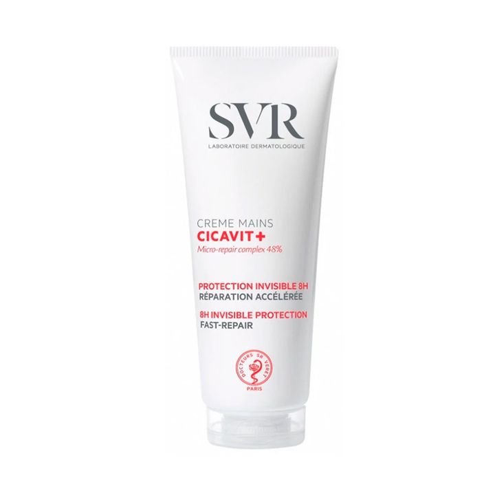 SVR Cicavit+ Crema de Manos 75 ml es una crema reparadora intensa para manos secas o dañadas que forma una protección invisible hasta 8 horas gracias a su fórmula con polisacárido rico en rhamnosa azúcar prebiótico y aceites vegetales nutritivos que calman reparan y fortalecen la barrera cutánea con textura de rápida absorción más del 96 % de ingredientes de origen natural sin siliconas ni perfume y presentada en un tubo sostenible con plástico reciclado