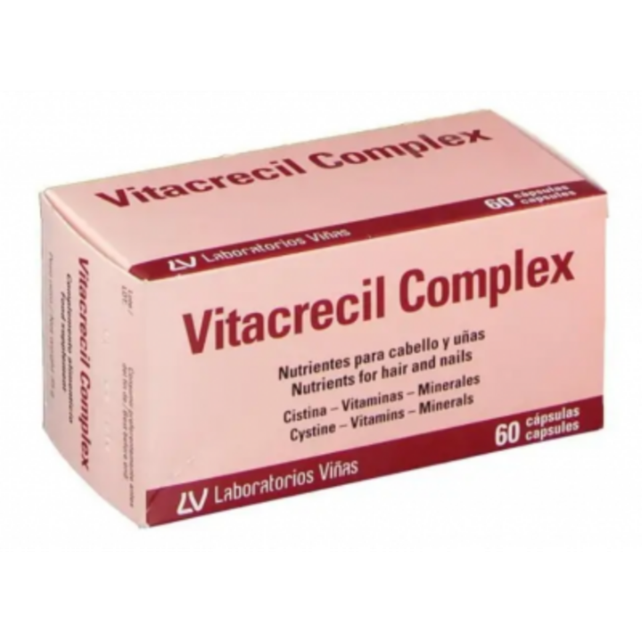 Vitacrecil Complex Normal es un complemento alimenticio diseñado para fortalecer y mejorar la salud del cabello y las uñas, ayudando a reducir la caída y promoviendo su crecimiento. Su fórmula incluye nutrientes esenciales como L-cistina, un aminoácido clave para la formación de queratina, que aporta resistencia y fortaleza; ácido pantoténico (vitamina B5), que mejora la hidratación y elasticidad del cabello y la piel; vitamina B6, que interviene en la regulación hormonal relacionada con la caída capilar y favorece la oxigenación del cuero cabelludo; biotina, fundamental para el metabolismo de ácidos grasos y la síntesis de queratina, contribuyendo a un cabello más fuerte y uñas saludables; hierro, que mejora la circulación y la oxigenación de los folículos pilosos; y zinc, que ayuda en la reparación celular y regula la producción de sebo para mantener el equilibrio del cuero cabelludo. La dosis recomendada es de dos cápsulas al día, durante un mínimo de tres meses, especialmente en periodos de caída estacional. Vitacrecil Complex Normal ofrece un soporte nutritivo completo para mantener el cabello y las uñas saludables desde el interior, complementando una dieta equilibrada y hábitos de vida saludables.
